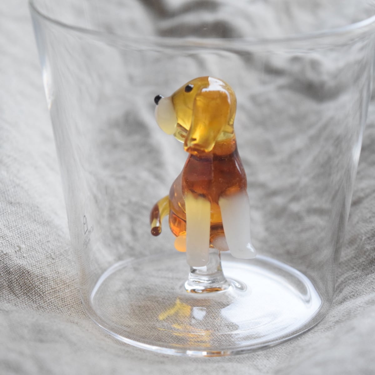 ゴールデンレトリバーがモチーフのガラスタンブラー。