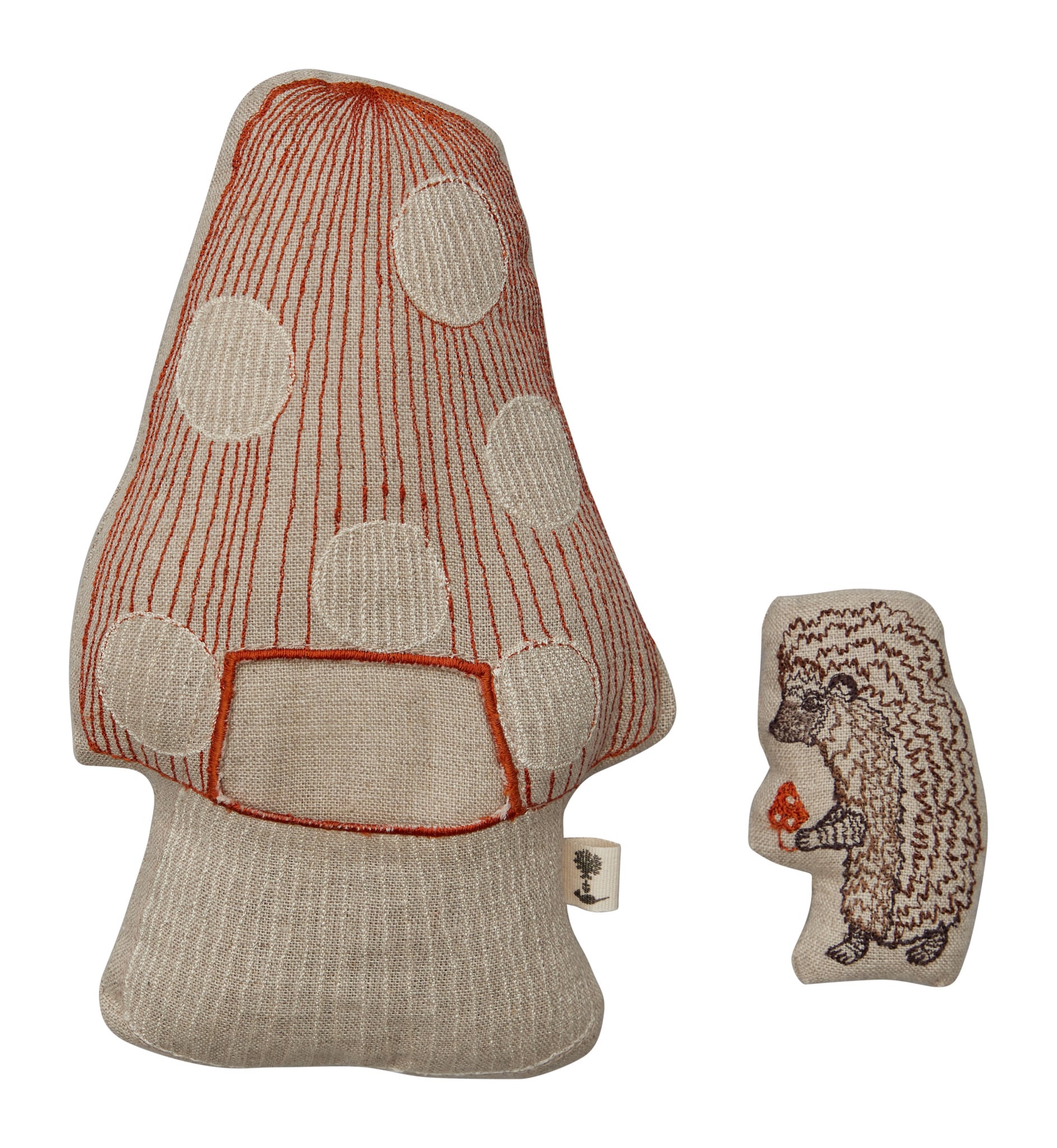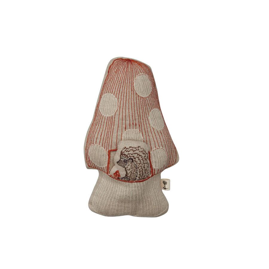 Hedgehog calls this orange toadstool home! Inside the pocket find hedgehog holding a mini mushroom. Our plush Pocket Mushroom is a special keepsake object that can be held in both hands.