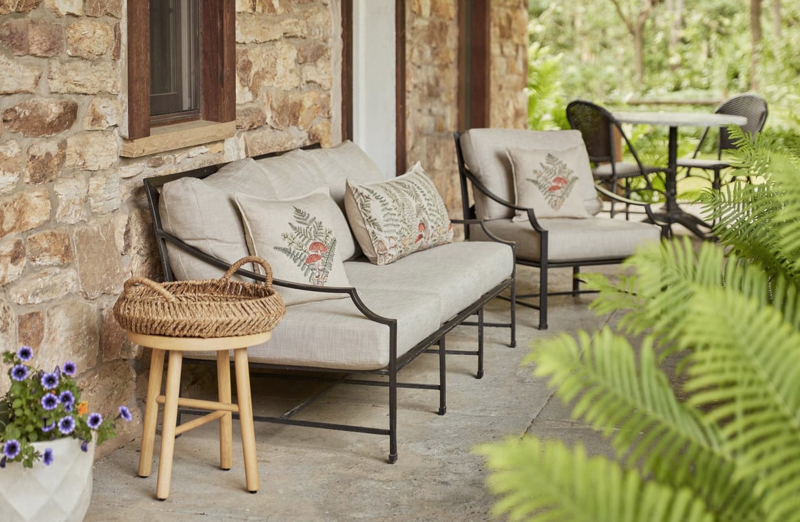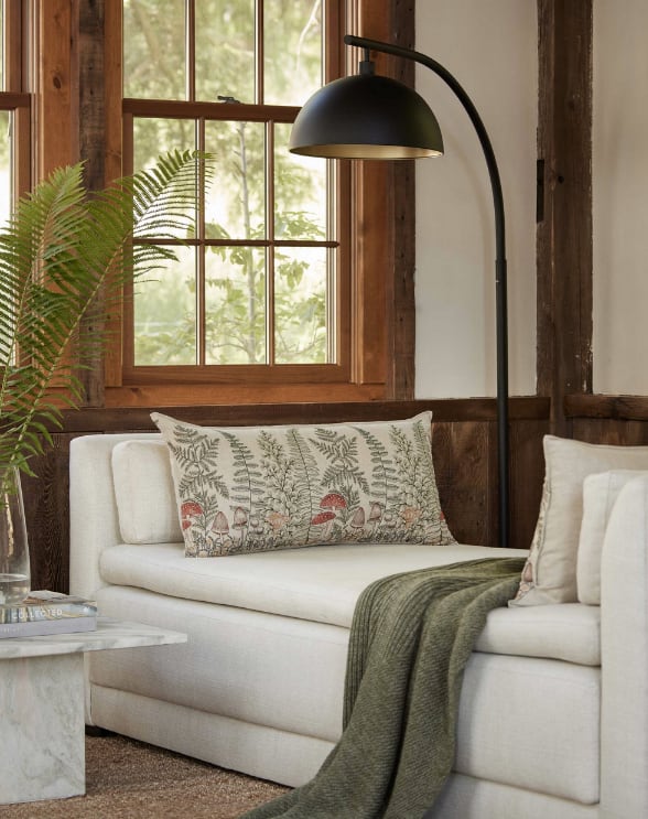 Behold the beauty of ferns! From their lacy leaves to varied green hues, the ancient plant has long enthralled us. This embroidered shade garden is composed of maidenhair ferns, sword ferns, and lady ferns. Beneath the fine fronds find a treasure trove of mushrooms, including golden chanterelles and agaric toadstools. Embrace your inner naturalist and decorate with our newest botanical pillow.