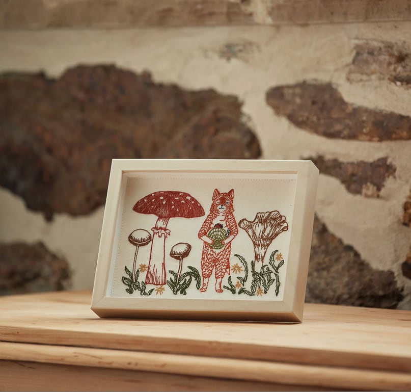 Embroidered on 100% natural cotton, stitched to a handmade paper card.