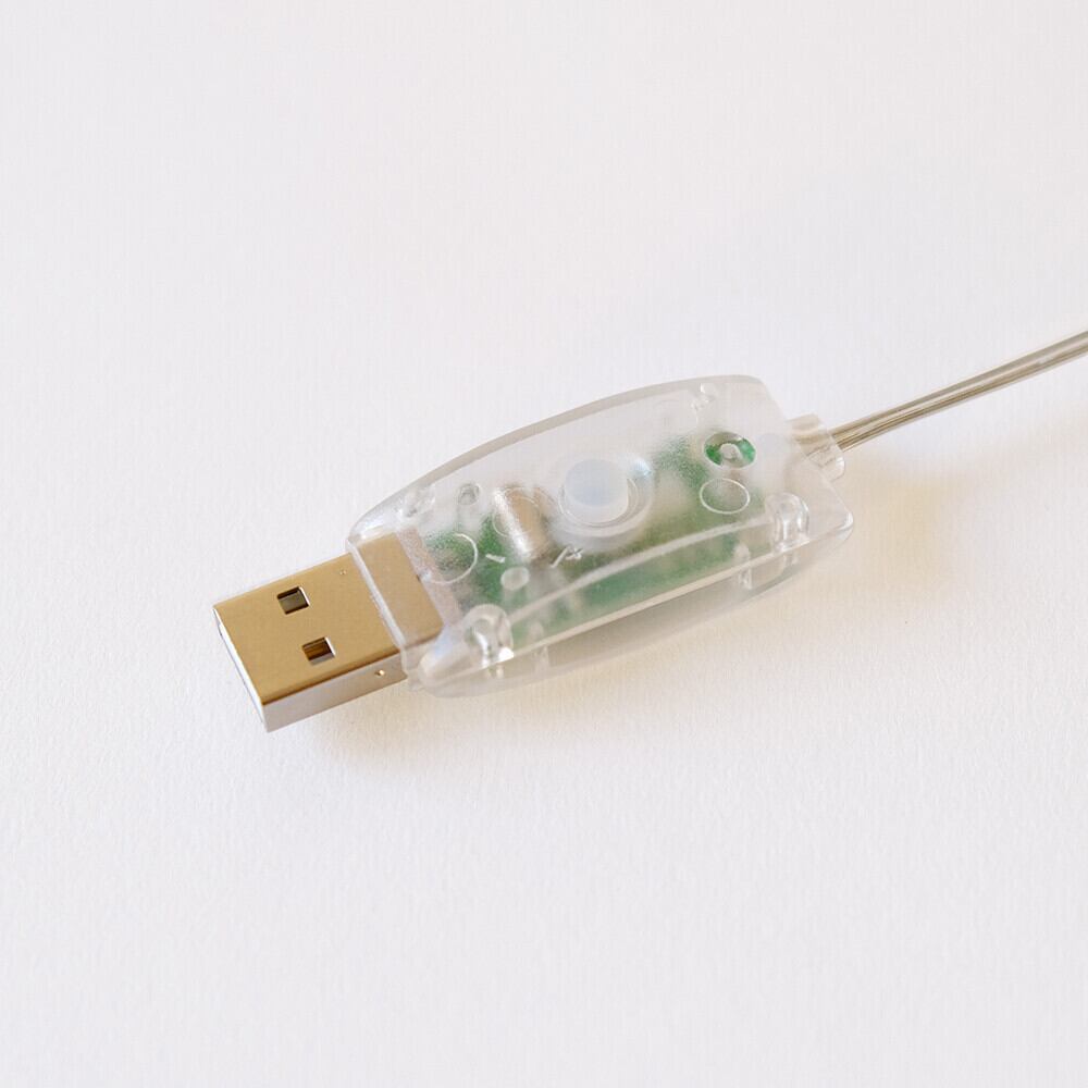 USBケーブルをUSBポートに差し込み、電源スイッチ、もしくはリモコンでON・OFF・点灯パターンの切り替えが可能です(8パターン点灯機能付き)また、調光、タイマー(6時間後に消灯し、18時間後に点灯)付きですので、お好みの明るさや、切り忘れの心配もありません。